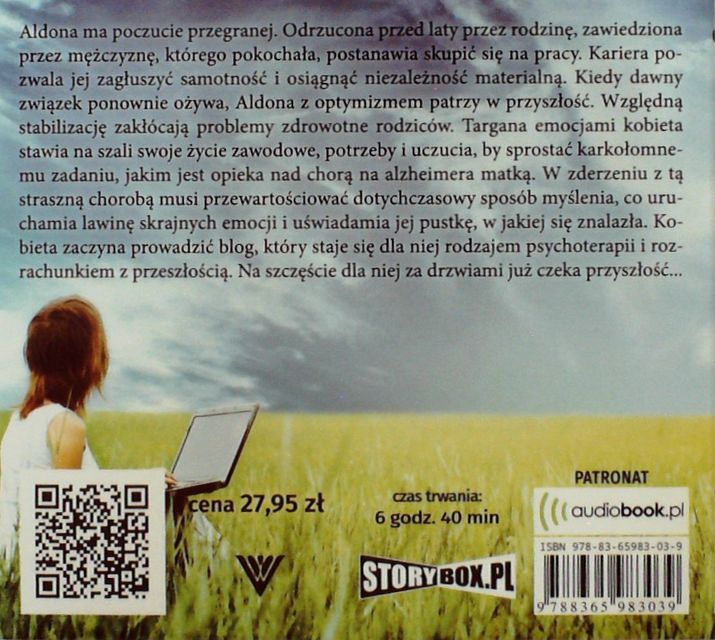 „Życie stawia nas przed trudnymi wyborami, ale czy zawsze postąpilibyśmy jednakowo w danej sytuacji? Mam nieodparte wrażenie, że największe znaczenie dla podjęcia decyzji mają nasze doświadczenia życiowe oraz aktualne uwarunkowania. Łatwo jest osądzić innych, mówiąc im, co powinni robić. Każdy dorosły człowiek posiada własnych system wartości, kształtowany przez całe życie, wobec czego sam jest w stanie racjonalnie ocenić sytuację.” Cóż mogę dodać więcej? To książka pełna niesamowitych emocji. Historia napisana z perspektywy głównej bohaterki. Aldona zyskała moją aprobatę już od pierwszych stron. Podziwiałam ją za jej determinację, zawziętość i siłę. W moim odczuciu to naprawdę fantastyczna kobieta. Mimo przeciwności losu, twardo stąpała po ziemi. A to się ceni. Warto też zwrócić uwagę, iż autorka porusza bardzo ważny temat – poświęcenie wobec drugiej osoby. W dzisiejszych czasach nie każdy jest w stanie pomóc bezinteresownie drugiej osobie, nawet tej najbliższej, a nie wspominając już o obcych. Mim to wierzę, iż na tym świecie są też tacy ludzie, którzy posiadają w sobie pełno empatii, a także zawsze są chętne do pomocy. Historia o ludzkich dramatach, które niespodziewanie mogą spotkać każdego z nas. Książka napisana bardzo przyjemnym językiem. Czyta się szybko i płynnie. Bez rozbudowanych opisów, zbędnych i uciążliwych treści, które mógłby zniechęcić czytelnika. Do przeczytania w dwa wieczory! A autorka jawnie prowokuje i zmusza czytelnika do refleksji! Serdecznie polecam.