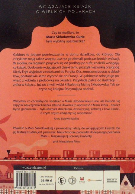 Mania Skłodowska to książka, z której można poznać lepiej życie znanej chemiczki. Dowiadujemy się, jaka była w dzieciństwie, jak zarabiała na studia, jak poznała swojego męża i czy jej mama była dla niej czuła. To ciekawe poznać tak ważną personę od zupełnie innej strony. Dzięki temu dzieci mogą zobaczyć, że nawet bardzo znani i cenieni ludzie byli po prostu zwyczajnymi osobami, które miały jakieś problemy i słabości. To świetny pomysł na stworzenie właśnie takiej fabuły.