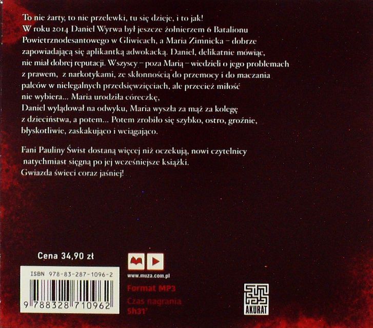 Podejrzany / Paulina Świst ; czytają Laura Breszka i Mateusz Król. - Warszawa : Muza SA, 2018 - 1 płyta CD (5 godz. 31 min.) : zapis cyfrowy, stereo ; 12 cm.