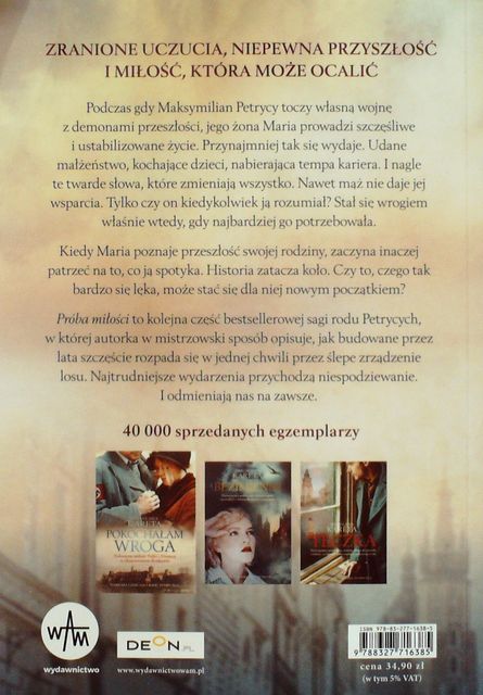 Próba miłości / Mirosława Kareta. - Kraków : Wydawnictwo WAM, 2019. - 494, [1] s. ; 21 cm.