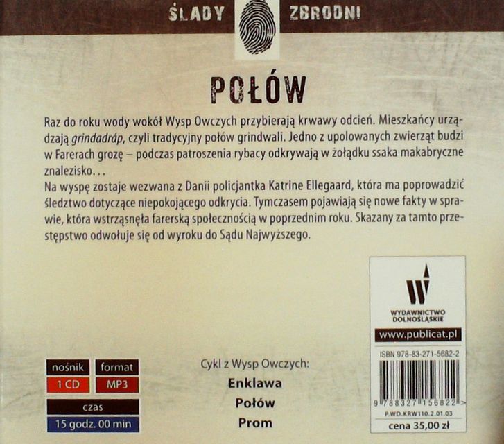 Połów / Remigiusz Mróz pod pseudonimem Ove Logmansbo ; czyta Marek Kalita. - Poznań ; Wrocław : Wydawnictwo Dolnośląskie - grupa wydawnicza Publicat S.A., 2017. - 1 płyta audio (CD) (15 godz.) : zapis cyfrowy, stereo. ; 12 cm.