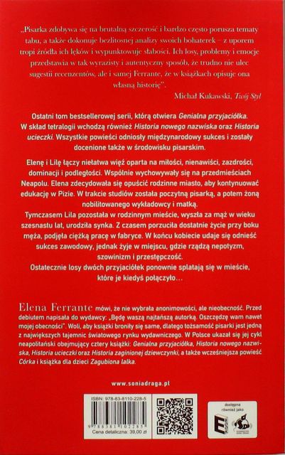 "Historia zaginionej dziewczynki" stanowi Cz.4 Cyklu. Cz.1 "Genialna przyjaciólka", Cz.2 "Historia nowego nazwiska", Cz.3 "Historia ucieczki" .