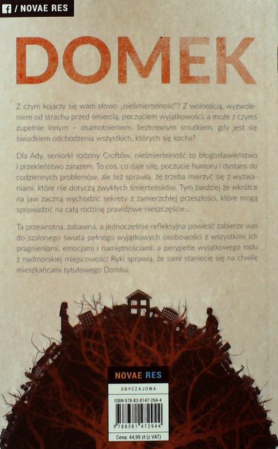 Domek to powieść trudna do opisania. Czytanie jej nie przyszło mi z łatwością, chociaż do lektury podchodziłam z ogromnym entuzjazmem. Pomysł na stworzenie książki jest naprawdę godny podziwu. Autorka w dzieciństwie bawiła się w wymyślanie historii, tworzenie rodziny, którą po latach umieściła w książce i zaprezentowała ją światu. Jest to więc pozycja bardzo intymna, pokazująca to, co bliskie Adriannie Szymańskiej i co dla niej ważne. Widać, że losy bohaterów są przemyślane i różnorodne, jednak może jest tego zwyczajnie za dużo. Może trzeba było się skupić na mniejszych partiach opowieści, by nie przytłoczyć czytelnika mnogością bohaterów i ich życiem.