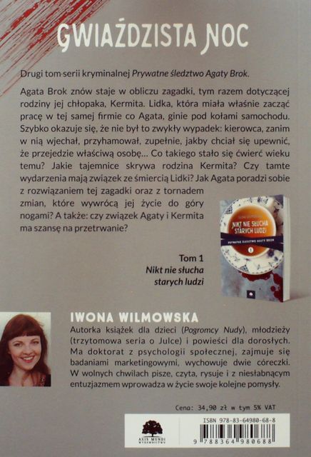 Prywatne śledztwo Agaty Brok. T.2, Gwiaździsta noc / Iwona Wilmowska. - Wydanie 2. - [Warszawa] : Axis Mundi, 2018. - 257 stron ; 21 cm.