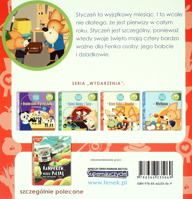 Dzień Babci i Dziadka / tekst Konrad Sobik ; ilustracje Patrycja Godula. - Bielsko-Biała : Konrad Sobik, 2019. - [20] stron : ilustracje kolorowe ; 22 x 22 cm.