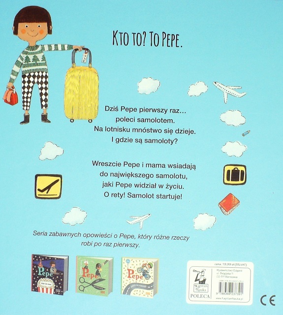 Pepe leci samolotem / Anna Karin Garhamn ; przekład Anna Czernow. - Warszawa : Wydawnictwo Edgard, 2019. - [28] stron : ilustracje kolorowe ; 22 x 22 cm.