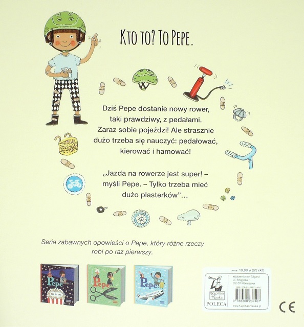 Pepe jeździ na rowerze / Anna Karin Garhamn ; przekład Anna Czernow. - Warszawa : Wydawnictwo Edgard, 2019. - [28] stron : ilustracje kolorowe ; 22 x 22 cm.