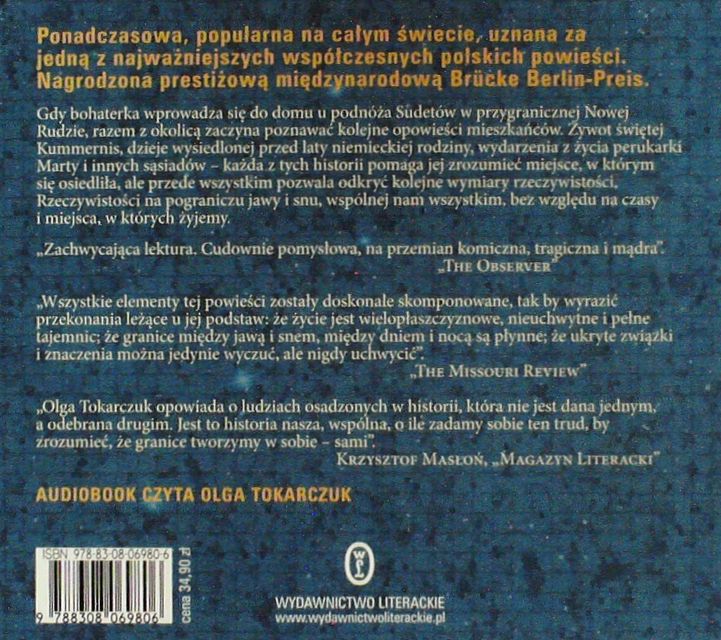 Cała ta fascynująca historia została oczywiście podana czytelnikowi w wyśmienity wprost sposób w kontekście literackim. Prozę tą się wprost chłonie. Jest przesycona wyrafinowanymi metaforami, które oddają niesamowity klimat czasów i miejsca, w którym fabularna akcja się toczy. W moim odczuciu to niesłychanie wyrafinowana lektura. Polecam, tym którzy mają awersję do prozy pani Tokarczuk. Może tym razem, będzie inaczej…