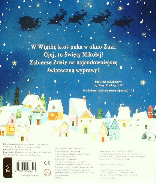 🎁 Tekst napisany jest wierszem, w zrozumiały i przystępny sposób. Miałam niewielkie problemy z jego melodyjnością, ale nie wpłynęło to znacząco na odbiór całości. Ponadto w książce znajdują się okienka, które po otwarciu uzupełniają dodatkowo fabułę (tak, za nimi też kryją się kolejne wersy). Jednak największe wrażenie na moich dzieciach zrobiła ostatnia strona - duża rozkładanka, przedstawiająca śnieżną kulę.