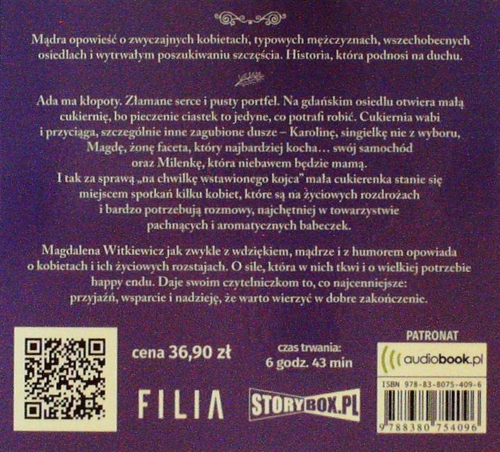 Szczęście pachnące wanilią / Magdalena Witkiewicz ; czyta Magda Karel. - Poznań : Wydawnictwo Filia ; Piaseczno : Heraclon International - Storybox.pl, 2019. - 1 płyta audio CD (6 godz. 43 min) : zapis cyfrowy, stereo ; 12 cm.