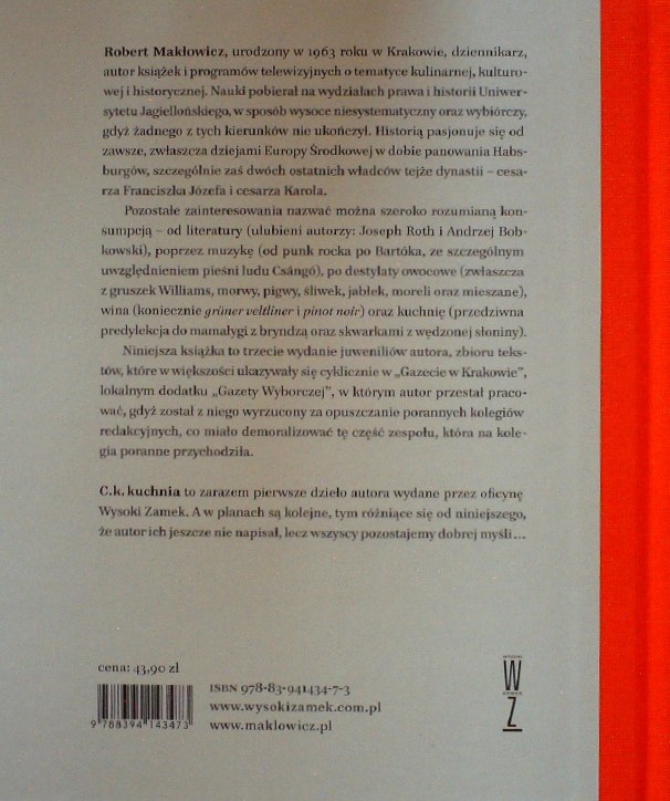 C. k. kuchnia / Robert Makłowicz. - Kraków : Wydawnictwo Wysoki Zamek, 2015. - 230, [1] s. : ilustracje kolorowe ; 22 cm.