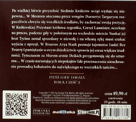 Na wschodzie Daenerys Targaryen, ostatnia z rodu Targaryenów, włada przy pomocy swych trzech smoków miastem zbudowanym na pyle i śmierci. Daenerys ma jednak tysiące wrogów i wielu z nich postanowiło ją odnaleźć… Tyrion Lannister, uciekłszy z Westeros, gdy wyznaczono nagrodę za jego głowę, również zmierza do Daenerys. Jego nowi towarzysze podróży nie są jednak obdartą bandą wyrzutków, (...) jaką mogliby się wydawać, a jeden z nich może na zawsze pozbawić Daenerys praw do westeroskiego tronu… Północy broni gigantyczny Mur z lodu i kamienia. Tam właśnie przed Jonem Snow, dziewięćset dziewięćdziesiątym ósmym lordem dowódcą Nocnej Straży, stanie najpoważniejsze jak dotąd wyzwanie. Ma bowiem potężnych wrogów nie tylko w samej Straży, lecz również poza nią, pośród lodowych istot mieszkających za Murem… W czasie narastających niepokojów fale przeznaczenia nieuchronnie prowadzą bohaterów do największego ze wszystkich tańców…