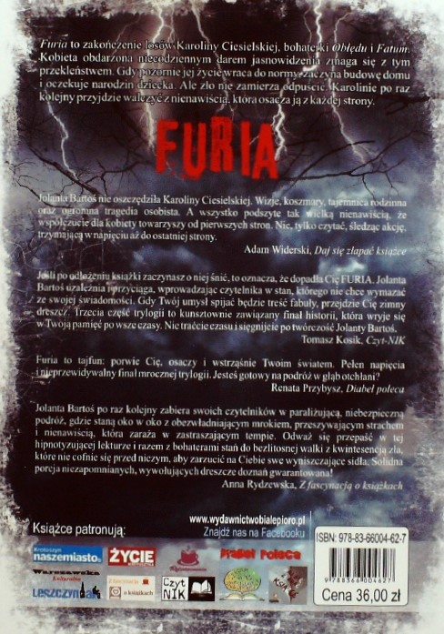Furia / Jolanta Bartoś. - Warszawa : Wydawnictwo Literackie Białe Pióro, 2019. - 227,[3] strony ; 21 cm.