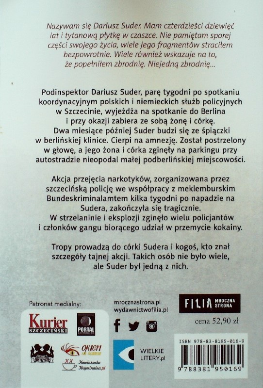 "Niepamięć" stanowi T.1 Cyklu Suder. T.2 "Niewiadoma", T.3 "Nietykalny".