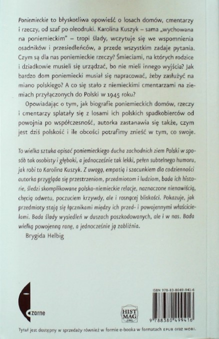 Poniemieckie / Karolina Kuszyk. - Wołowiec : Wydawnictwo Czarne, 2019. - 458, [5] stron ; 20 cm.