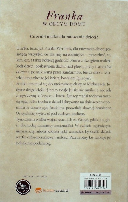 Franka w obcym domu / Wioletta Sawicka. - Warszawa : Prószyński Media Sp. z o.o., 2020. - 422, [2] strony ; 20 cm.