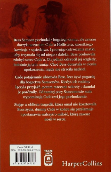 Parę naszych głównych bohaterów, Bess i Cade, dzieli pozornie wszystko. Ale, jak wiemy, przeciwieństwa się przyciągają, a ta młoda kobieta dosłownie traci głowę dla przystojnego Hollistera. Napotykają różne perypetie, które komplikują ich i tak trudną relację. Czyli, dosyć klasycznie. Łatwo przewidzieć zakończenie, aczkolwiek nie psuje to przyjemności z lektury. Mamy do czynienia z powieścią lekką, całkiem fajną, wręcz stworzoną do wypełniania nudnych wieczorów. Kojarzy mi się ze starymi serialami, naiwnymi, ale sprawiającymi, że w głupi sposób ciężko oderwać wzrok od ekranu. Naciągam komplement? Myślę, iż sporo osób przyzna mi rację.