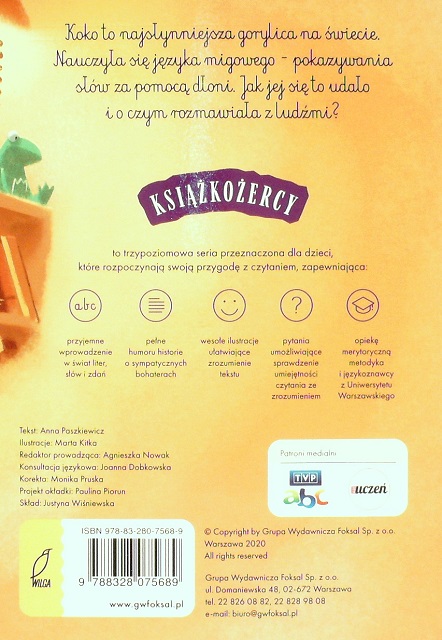 Koko uczy się migać / Anna Paszkiewicz ; ilustracje Marta Kitka. - Warszawa : Wydawnictwo Wilga - Grupa Wydawnicza Foksal Sp. z o.o., 2020. - 47, [1] strona, [1] karta tablic : ilustracje kolorowe ; 21 cm.