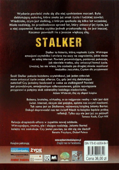 Stalker / Jolanta Bartoś. - Warszawa : Wydawnictwo Literackie Białe Pióro, 2020. - 230, [1] strona ; 21 cm.