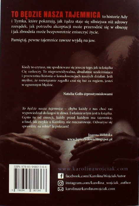 To będzie nasza tajemnica / Karolina Wójciak. - Vancouver ; [Warszawa] : Karolina Wójciak, 2020. - 420 stron ; 21 cm.