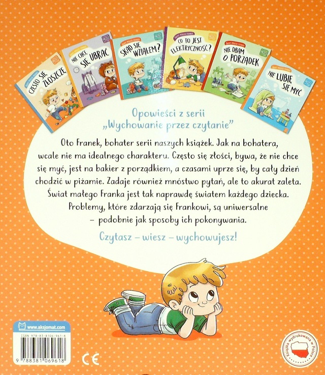 Oto Franek, bohater serii naszych książek. Jak na bohatera, wcale nie ma idealnego charakteru. Często się złości, bywa, że nie chce się myć, jest na bakier z porządkiem, a czasami uprze się, by cały dzień chodzić w piżamie. Zadaje również mnóstwo pytań, ale to akurat zaleta. Świat małego Franka jest tak naprawdę światem każdego dziecka. Problemy, które zdarzają się Frankowi, są uniwersalne - podobnie jak sposoby ich pokonywania. Czytasz - wiesz - wychowujesz! [nota wydawcy]