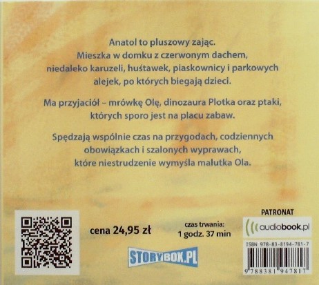 Anatol i przyjaciele / Beata Ostrowicka ; czyta Gabriela Jaskuła. - Piaseczno : Heraclon International - Storybox.pl, 2009. - 1 płyta audio CD (1 godz. 37 min) : zapis cyfrowy, stereo ; 12 cm.