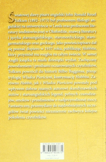 książka bardzo ciekawa i bajkowa.autor wspaniale ukazuje nam świat hobbita jak i świat krasnoludów .autor pisze dość współcześnie dzięki czemu łatwiej zrozumieć wypowiedzi bechterów , choć słowo,, paczali'' jest niezgodne z ortografią . ogólnie książka mi się podoba .polecam innym