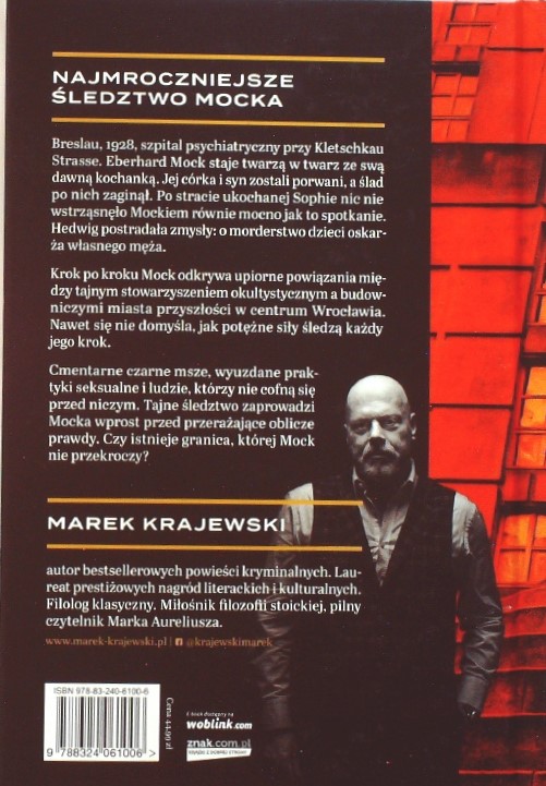 Jeszcze przed premierą, „Moloch” był anonsowany jako jedna z najmocniejszych i najmroczniejszych książek Krajewskiego. Trudno się z tym nie zgodzić, bowiem tak posępnie i ponuro w twórczości wrocławskiego pisarza chyba jeszcze nigdy nie było. Satanistyczne obrządki sąsiadują tu z zagadką zaginięcia dwójki dzieci i bestialskich morderstw. Jak to się łączy z planem postawienia w centrum miasta czterdziestopiętrowego szklanego budynku, który ma obserwować Wrocław niczym ponure bóstwo? Odkryć będzie to musiał niezastąpiony Eberhard Mock, który nie podejrzewa jeszcze, że podejmując się rozwikłania tej zagadki, robi pierwszy krąg w otchłań, z której nie ma już powrotu.
