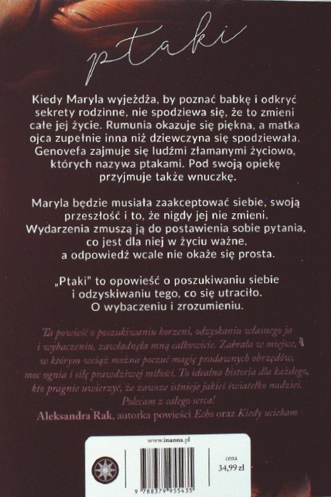 Ptaki / Patrycja Żurek. - Bydgoszcz : Wydawnictwo Inanna, 2020. - 272 strony ; 20 cm.
