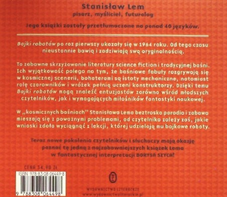 Bajki robotów / Stanisław Lem ; czyta Borys Szyc. - Kraków : Wydawnictwo Literackie, 2017. - 1 płyta CD (5 godz. 21 min.) : digital, stereo ; 12 cm.