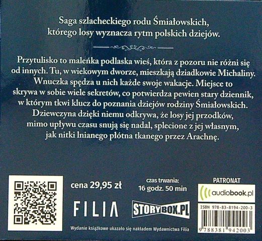 Nić Arachny / Renata Kosin ; czyta Joanna Domańska. - Piaseczno : Heraclon International - Storybox.pl, 2019. - 1 płyta audio (CD) (16 godz. 50 min) : zapis cyfrowy, stereo. ; 12 cm.