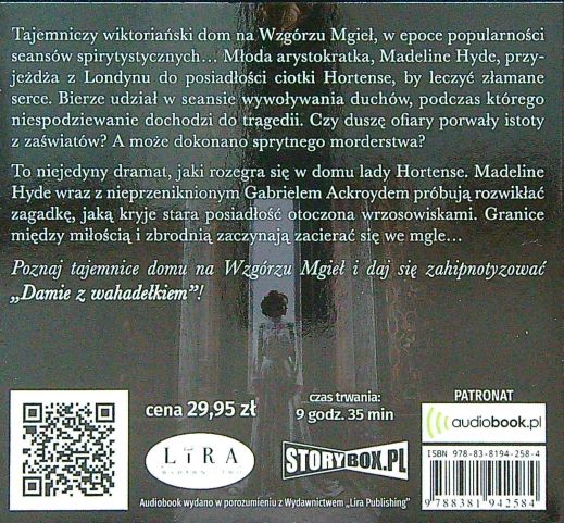 Dama z wahadełkiem / Paulina Kuzawińska ; czyta Donata Cieślik. - Warszawa : Lira Publishing Sp. z o.o., 2019. - 1 płyta audio (CD) (9 godz. 35 min) : zapis cyfrowy, stereo. ; 12 cm.