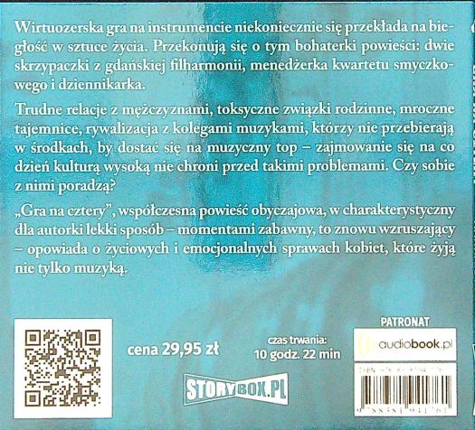 Gra na cztery / Hanna Cygler ; czyta Donata Cieślik. - Piaseczno : Heraclon International - Storybox.pl, 2019. - 1 płyta CD (10 godz.22 min.) : digital, stereo ; 12 cm.