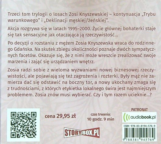 Przyszły niedokonany / Hanna Cygler ; czyta Elżbieta Kijowska. - Piaseczno : Heraclon International - Storybox.pl, 2004. - 1 płyta CD (10 godz. 9 min.) : digital, stereo ; 12 cm.