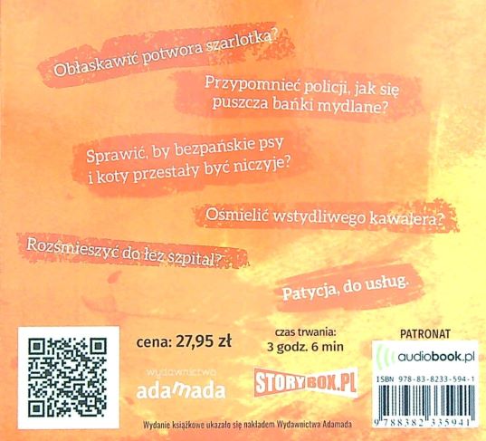 Na pomoc Patycjo! / Agnieszka Urbańska ; czyta Mirella Rogoza-Biel. - Piaseczno: Heraclon International - Storybox.pl, 2019. - 1 płyta audio (CD-mp3) (3 godz. 6 min) : zapis cyfrowy, stereo. ; 12 cm.