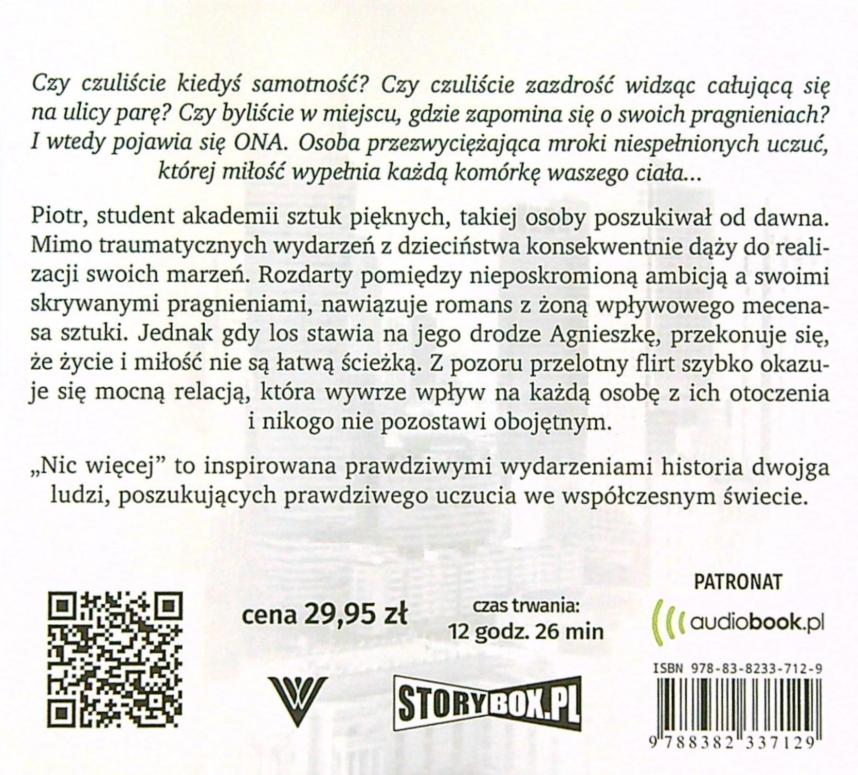 Nic więcej / Piotr Pietrzak ; czyta Konrad Biel. - Piaseczno : Heraclon International - Storybox.pl, 2020. - 1 płyta audio (CD) (12 godz. 26 min.) : zapis cyfrowy, stereo. ; 12 cm.