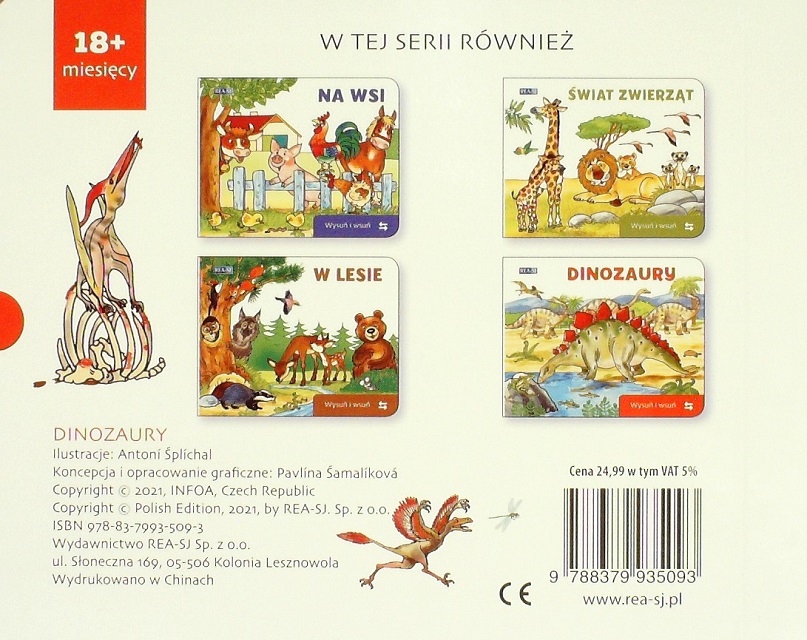 Dinozaury / [ilustracje Antoni Splichal]. - Kolonia Lesznowola : REA-SJ, 2021. - [8] stron : ilustracje ; 14 x 18 cm.