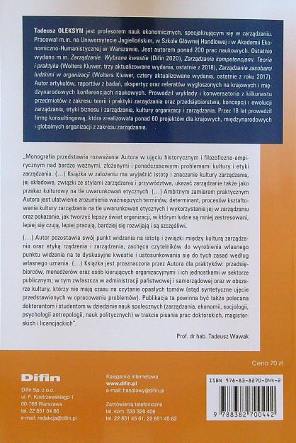 Kultura i etyka zarządzania / Tadeusz Oleksyn. - Warszawa : Difin, 2021. - 350 stron : ilustracje ; 23 cm.