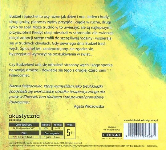 Psierociniec, W poszukiwaniu straconego węchu / Agata Widzowska ; czyta Janusz Zadura. - Warszawa : Virtualo - Biblioteka Akustyczna, 2018. - 1 płyta audio CD-MP3 (1 godzina 17 minut) : zapis syfrowy, stereo ; 12 cm.