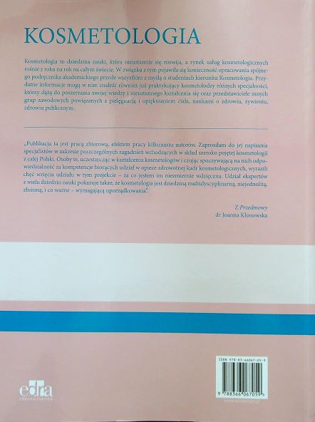 Kosmetologia / redakcja Joanna Klonowska. - Wrocław : Edra Urban & Partner, 2022. - VI, [2], 400 stron : fotografie, ilustracje, wykresy ; 27 cm.