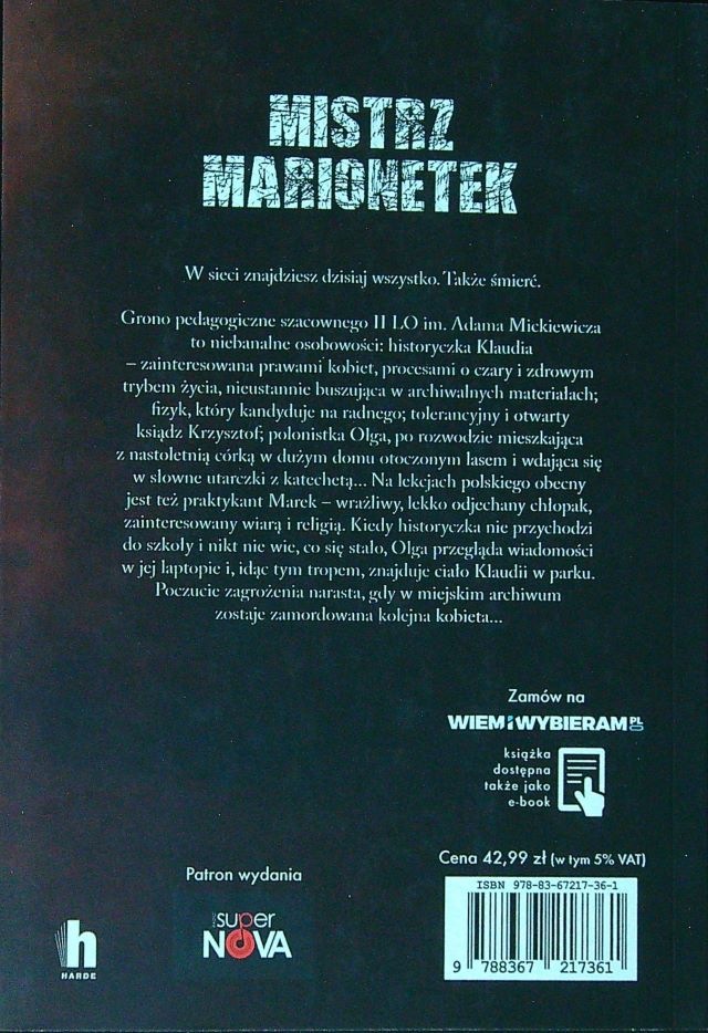 Mistrz Marionetek / Grzegorz Skorupski. - Warszawa : Time SA - Harde Wydawnictwo, 2022. - 364, [2] strony ; 21 cm.