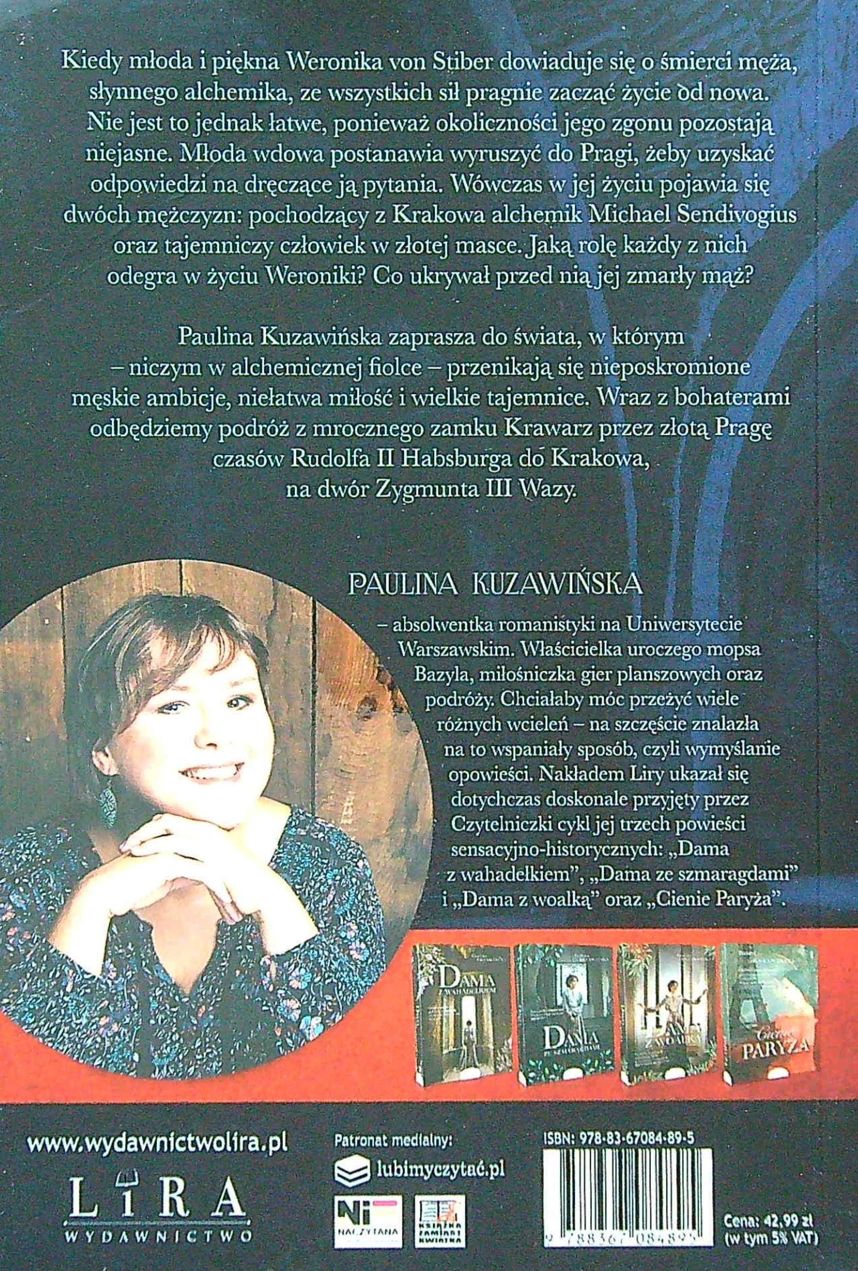 Żona alchemika / Paulina Kuzawińska. - Wydanie pierwsze. - Warszawa : Lira Publishing Sp. z o.o., 2022. - 316, [1] strona ; 20 cm.