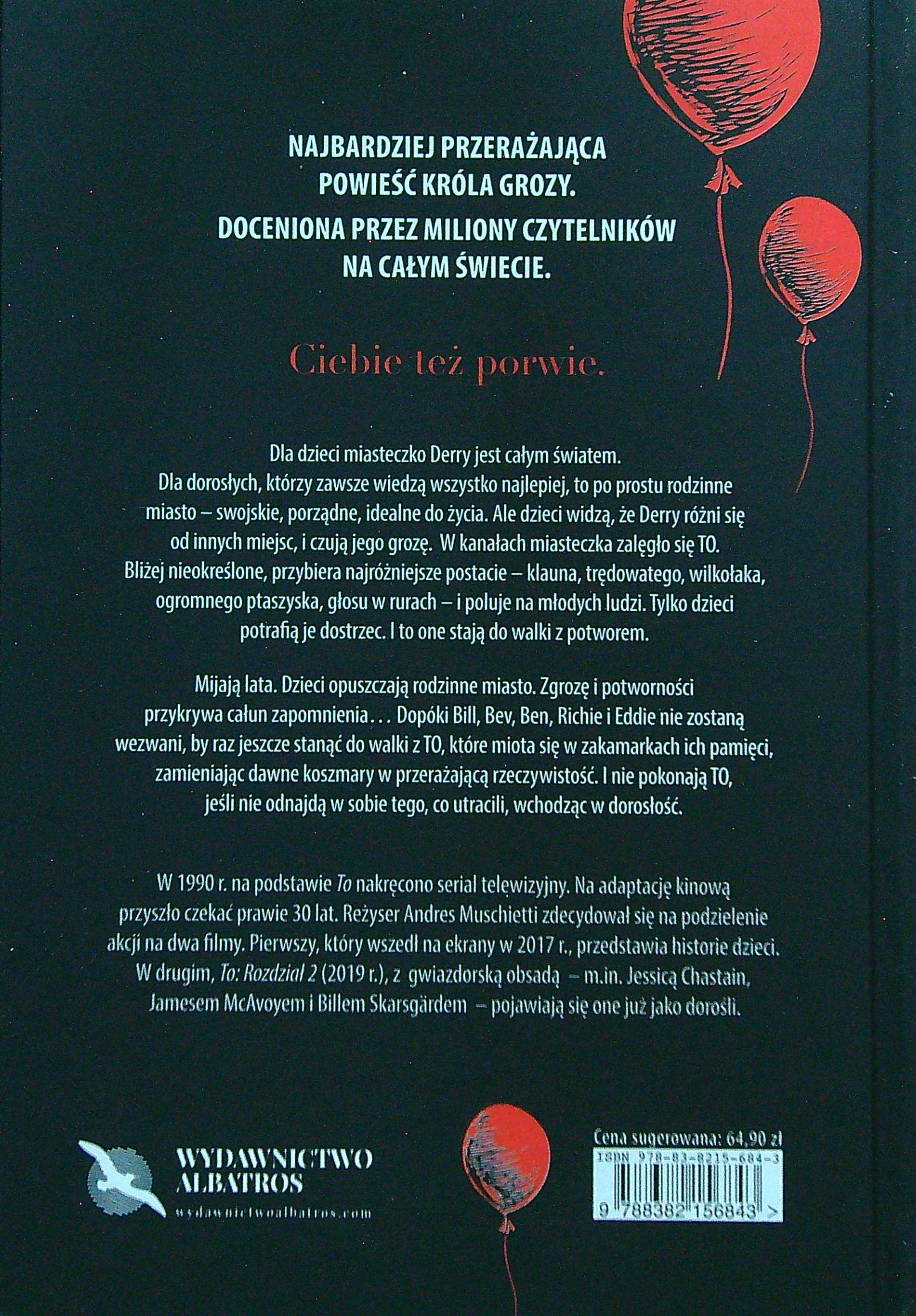 To / Stephen King ; z angielskiego przełożył Robert Lipski. - Wydanie IX (poprawione). - Warszawa : Wydawnictwo Albatros Sp. z o.o., 2022. - 1102, [1] strona ; 21 cm.