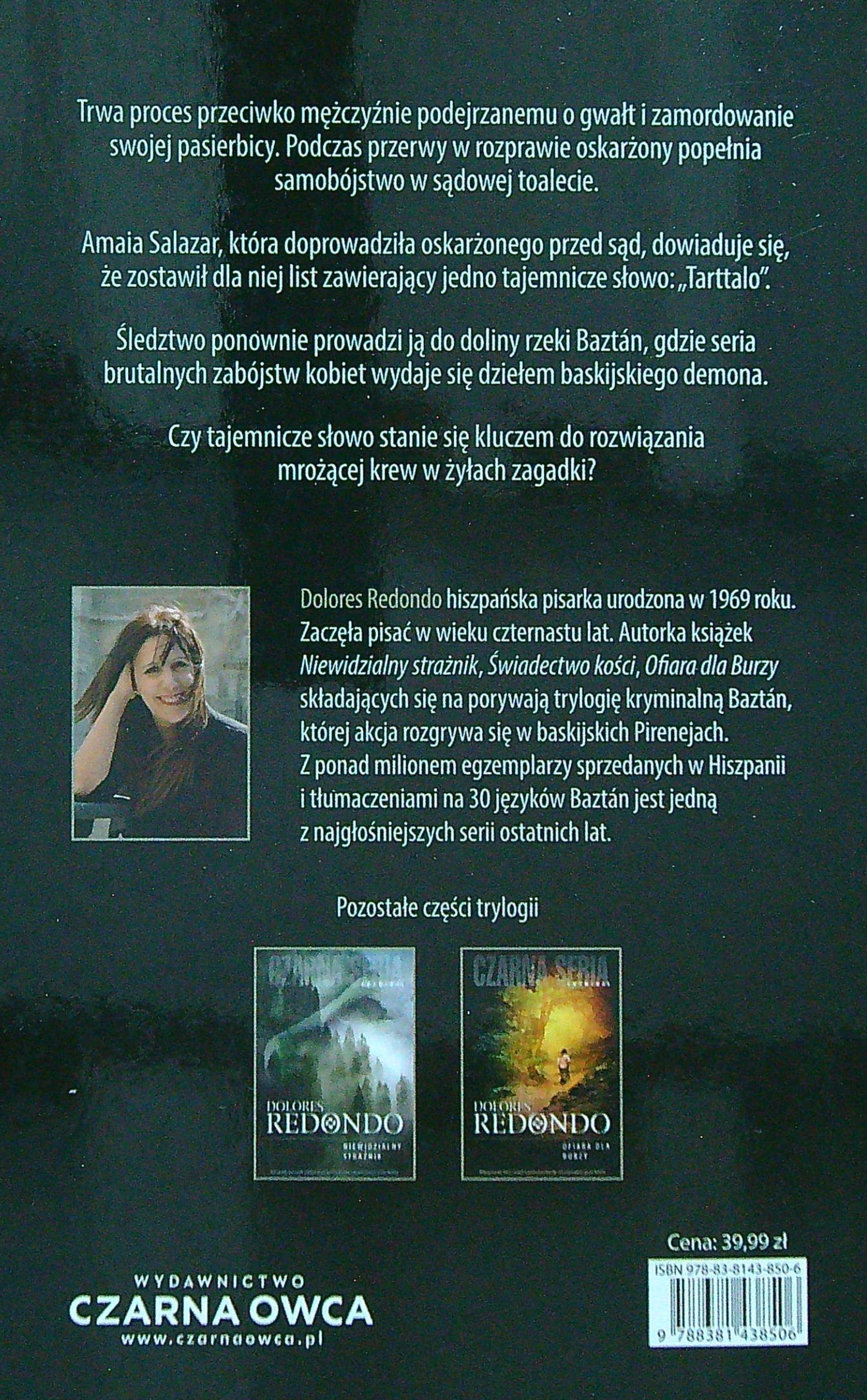 Świadectwo kości / Dolores Redondo ; przełożyła Maria Mróz. - Wydanie II. - Warszawa : Wydawnictwo Czarna Owca, 2020. - 573, [1] strona ; 21 cm.