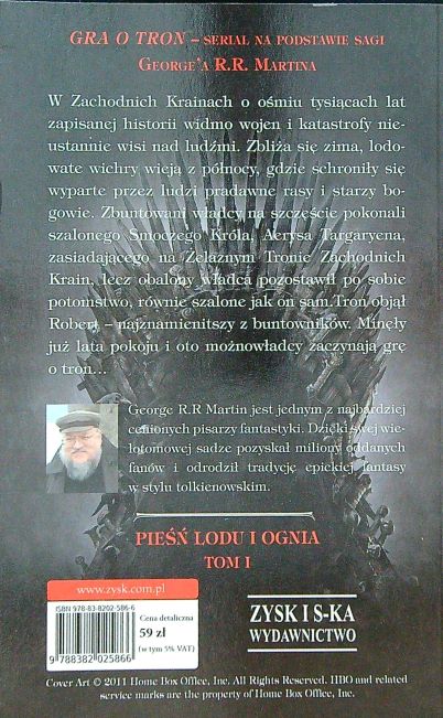 George R.R. Martin znany jest ze swojej sagi Pieśń Lodu i Ognia. W 2011 roku dzięki Zyskowi i S-ka wyszła pierwsza część tej serii „Gra o tron”. Lord Eddard zostaje wybrany królewskim Namiestnikiem. Jego wyjazd poprzedza seria nieprzyjemnych wypadków – jeden z jego synów spada z wieży i traci władzę w nogach, a jego bękart przywdziewa czerń, zostając jednym z braci z Nocnej Straży. Mało tego – najmłodsza córka bije się z następcą tronu i narzeczonym siostry,