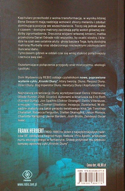 Kapitularz Diuną / Frank Herbert ; przełożył Marek Michowski. - Wydanie II poprawione, (dodruk). - Poznań : Dom Wydawniczy REBIS Sp. z o.o., 2022. - 621 stron : ilustracja ; 20 cm.