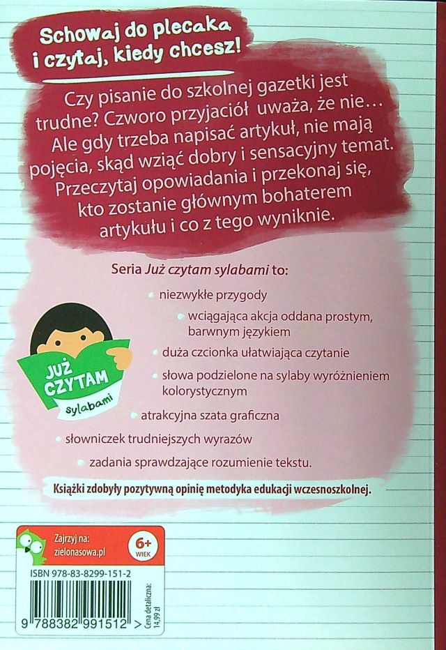 Gazetka szkolna / Magda Malicka ; ilustracje Magdalena Jakubowska. - Wydanie I. - Warszawa : Wydawnictwo Zielona Sowa Sp. z o.o., 2023. - 46,[2] strony : ilustracje ; 21 cm.