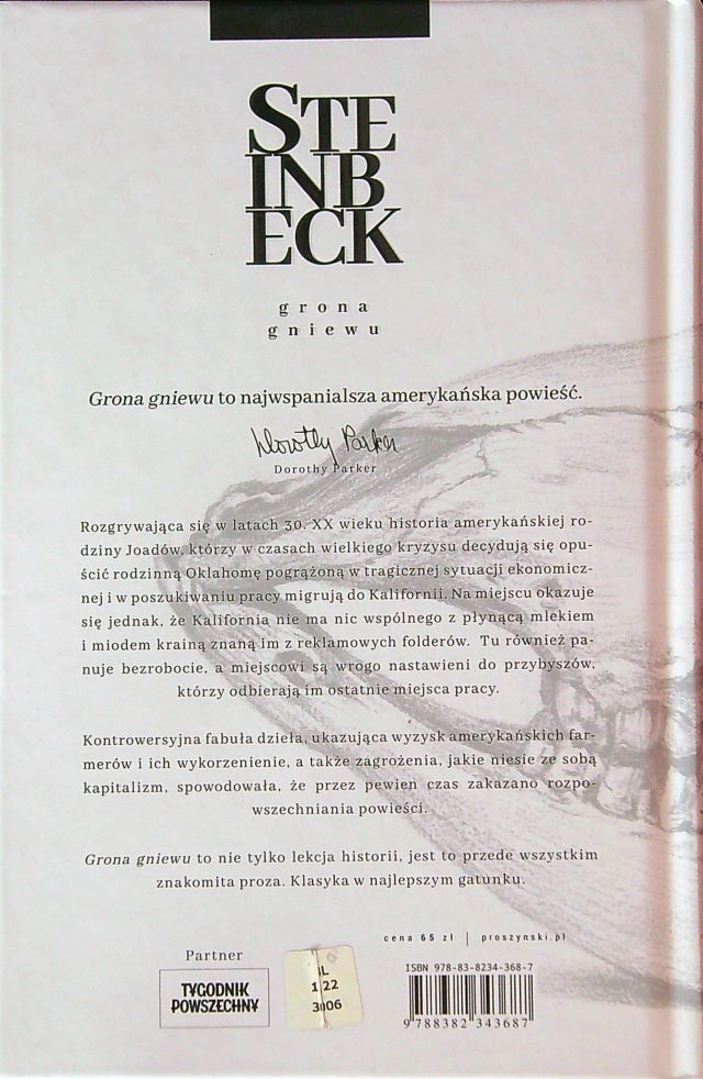 Smutna powieść o nas - o ludziach, ich marzeniach i myślach. Czasem bezwzględnych egoistach, czasem o tych myślących za wszystkich. To powieść o rodzinach i ich zmaganiach. I czasem łzach wylanych w ukryciu... Steinbeck pisze bardzo wiarygodnie, zżywasz się z bohaterami i próbujesz ich wręcz pocieszać, co nijak ci nie wychodzi. Steinbeck uchwycił tryby okropnej maszyny, w jaką wpadają ludzie i która mieli i mieli wedle swego trybu.