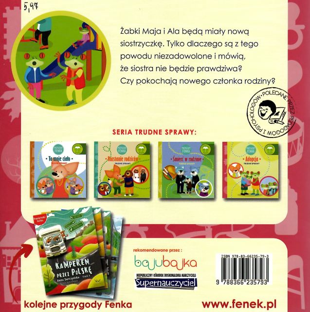 Adopcja / tekst Dominika Gałka ; ilustracje Patrycja Godula. - Wydanie drugie. - Bielsko-Biała : Konrad Sobik, 2022. - [20] stron : ilustracje ; 22 x 22 cm.