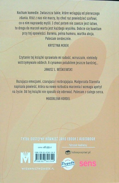 Cynamonowe gwiazdy / Małgorzata Starosta. - Warszawa : Wydawnictwo Mięta Sp. z o.o., 2022. - 332, [1] strona ; 21 cm.